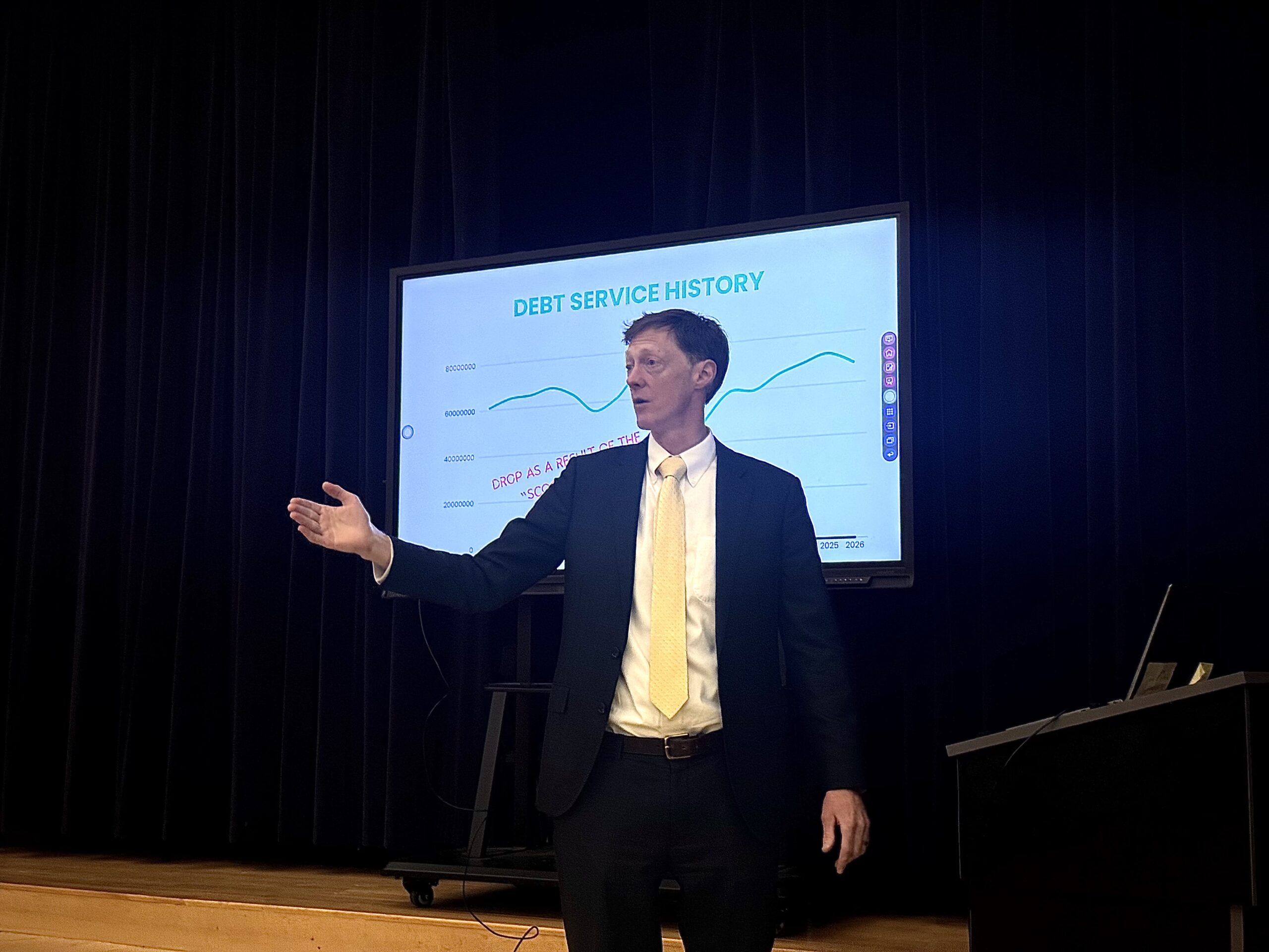 At LW Beecher School, Mayor Justin Elicker spent around 20 minutes reviewing his budget proposal, announced late last month, mostly under the implicit goal of explaining and justifying a proposed 2.3 percent increase in the mill rate.