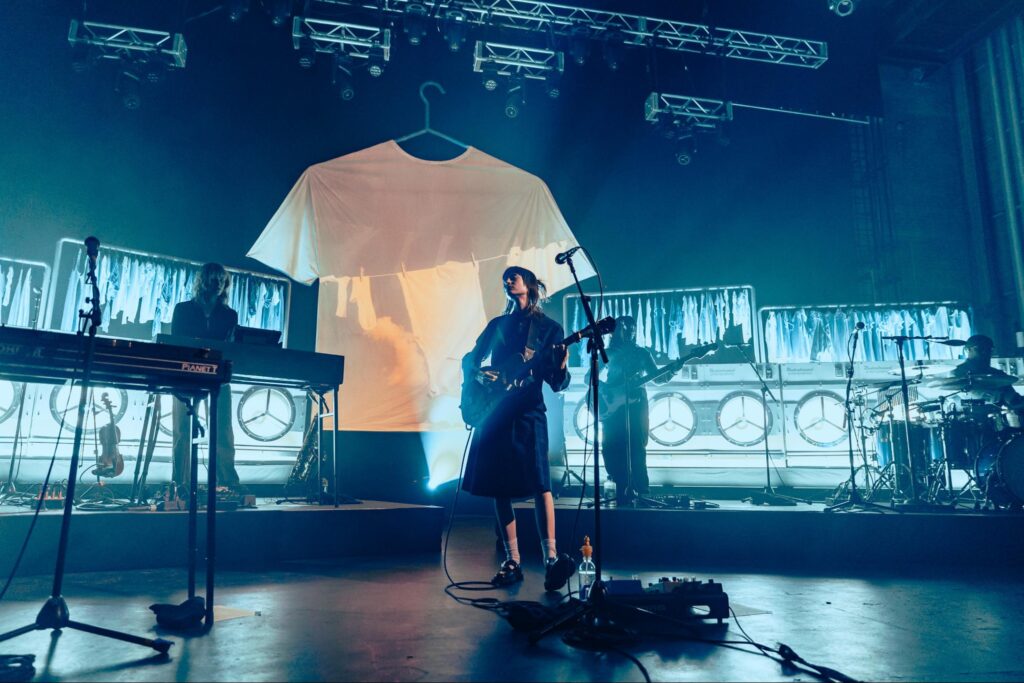 The stage captured just that, with futuristic laundry machines providing additional neon lighting, glowing past the blue clothes hanging just behind — a reference to the 2024 album cover of “Undressed at the Symphony.”