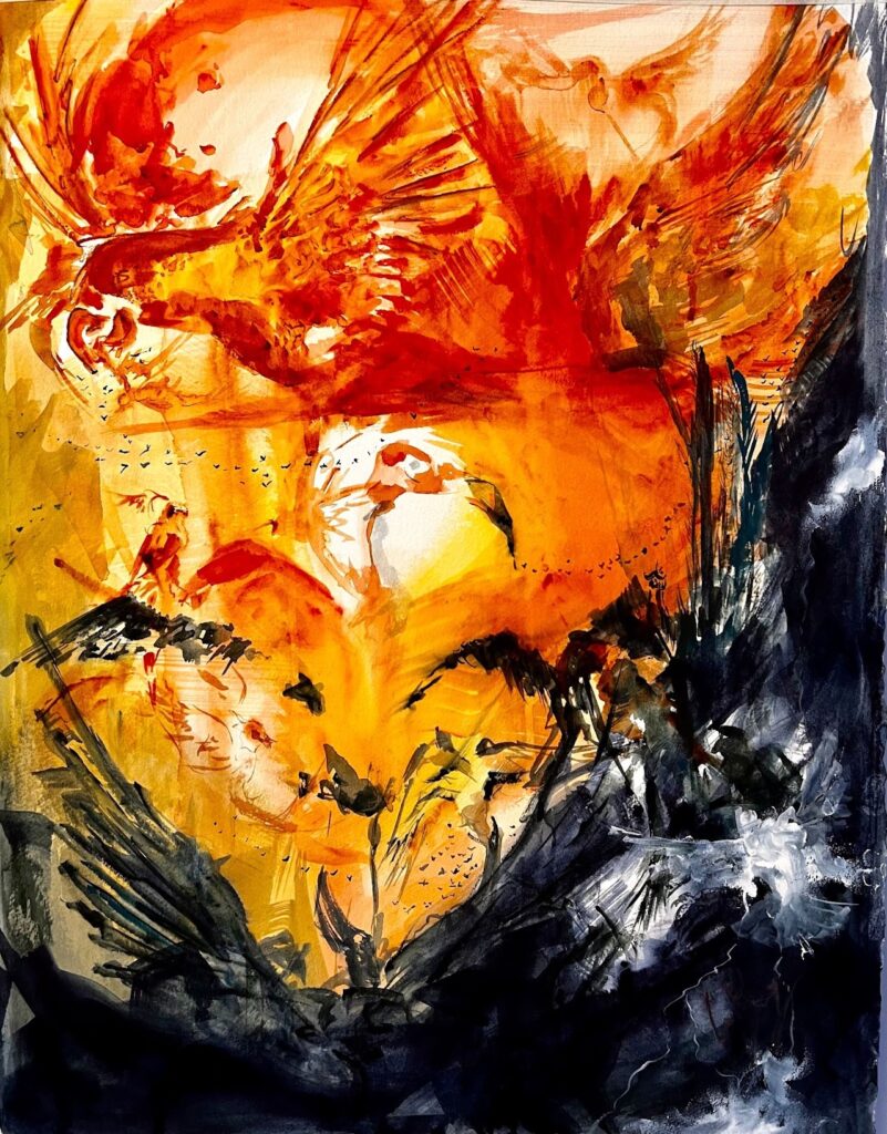 A self-described climate artist, Young is no stranger to activism. She has created art in the wake of disaster and has traveled to different countries to interview community members about their climate stories, which she then creates paintings of.