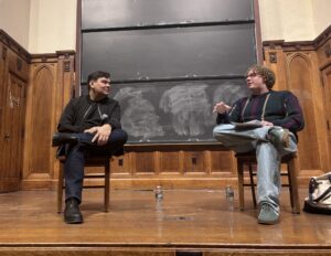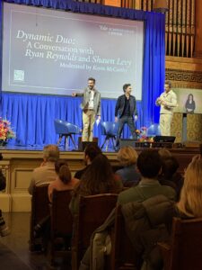 At the Schwarzman Center last week, Shawn Levy ’89 and Ryan Reynolds discussed the joys of collaboration and making movies that connect audiences in divisive times.