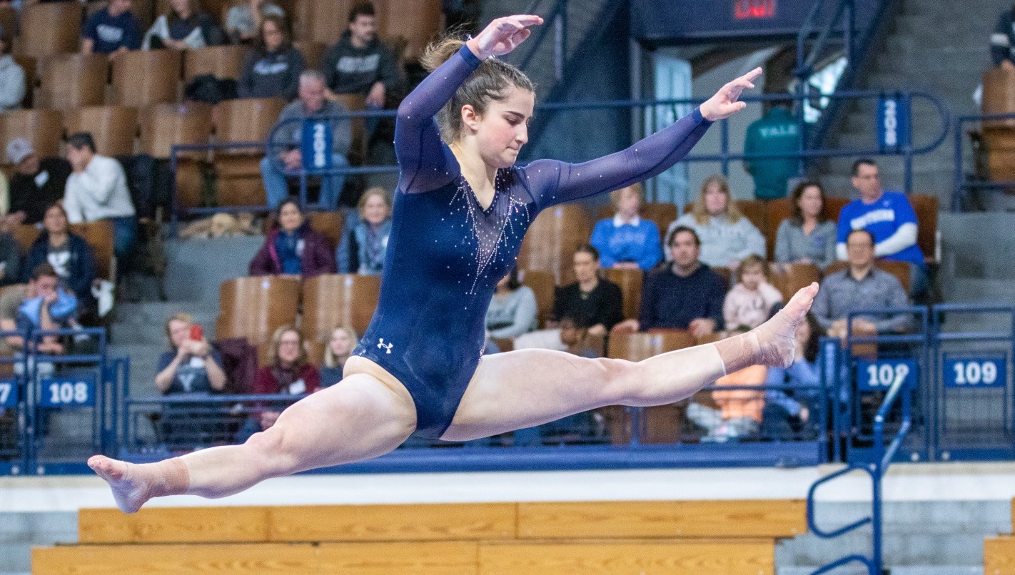 Yale gymnastics veterans Gigi Sabatini ’26 and Emma Mangiacapre ’24 both scored the highest for the team on vault and beam, respectively. The two tied on the balance beam with a 9.8520. Additionally, Sabatini took home an all-around gold for the team with a high score of 38.8250.