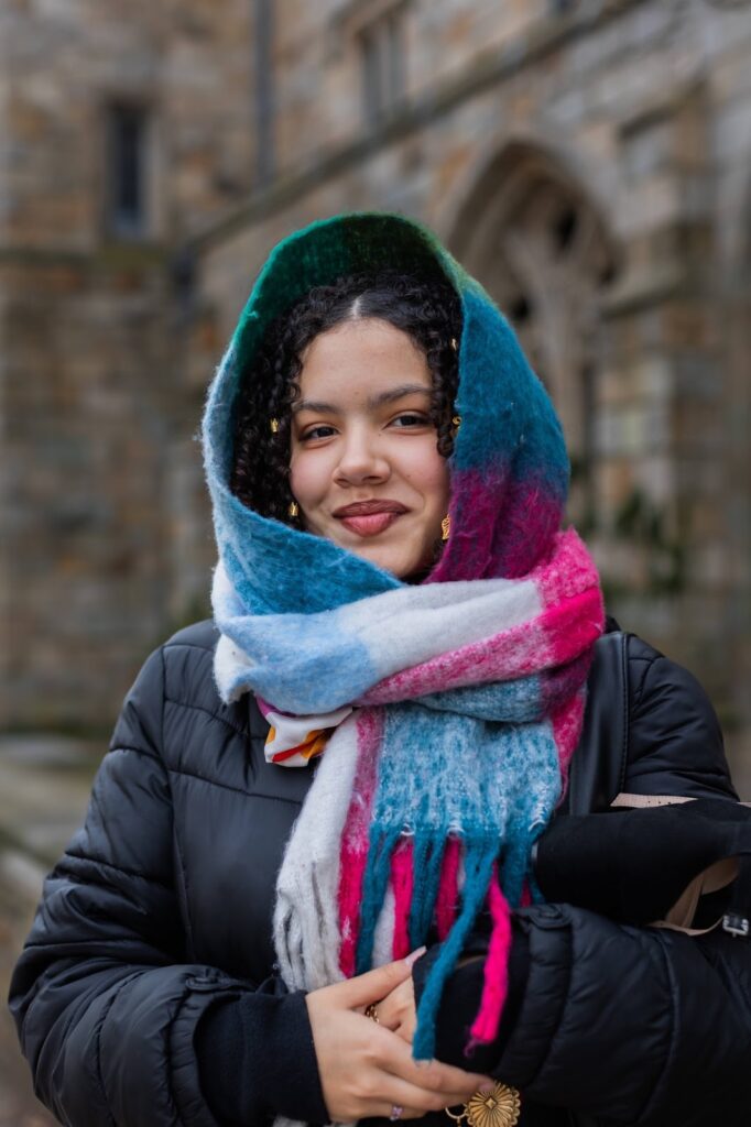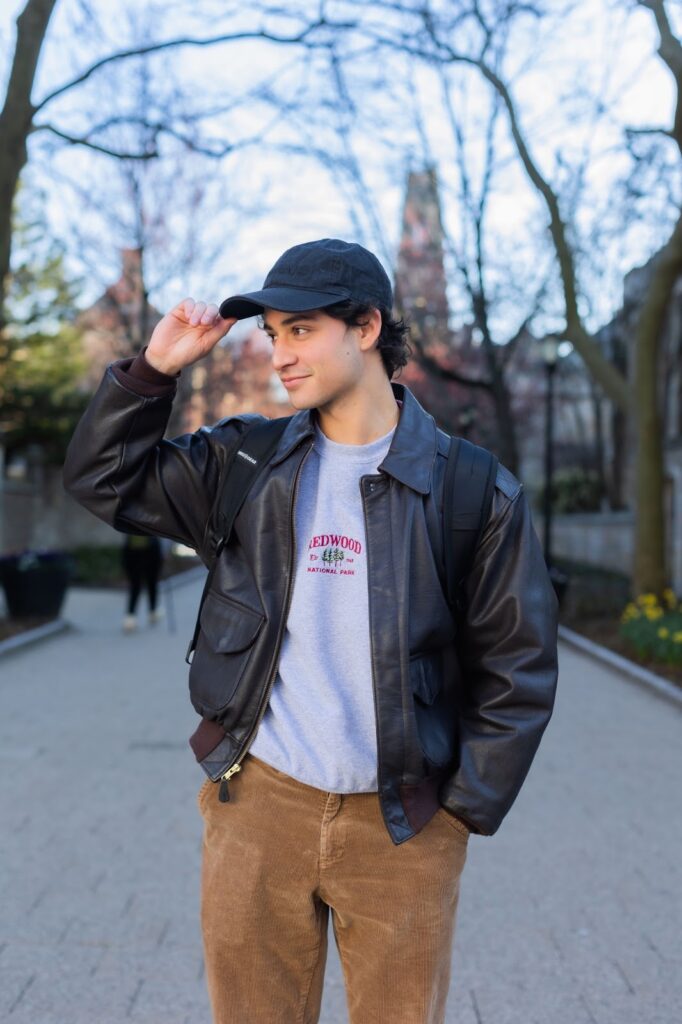In one of his videos, Eddi stops Luis Tomás Orozco Vaca ’26 on Alexander Walk. Complimenting his jacket, Eddi asks to take his photo, to which Luis Tomás says that he’s “not photogenic.” Luis Tomás poses naturally as Eddi frames his composition.