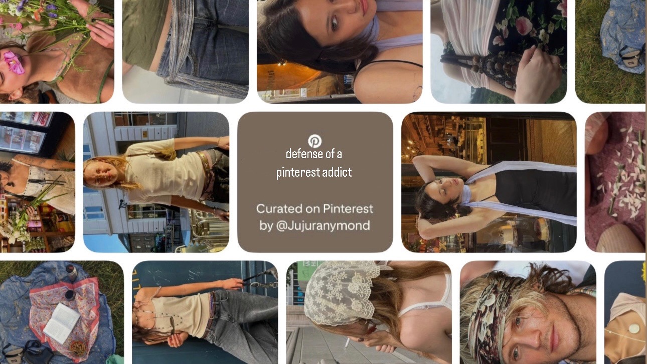 In 2023, I was interviewed by Pinterest’s research and development team. I’m not sure if the non-disclosure agreement I signed was binding, or if it’s expired by now — they do that, right? like fruit? — but I’m pretty sure this will be fine. Before the interview the team had gone through my boards, my activity on the app, my six-year-old account, my “get out of the flop era” board with seventeen sections and over six hundred — I’ll stop.
