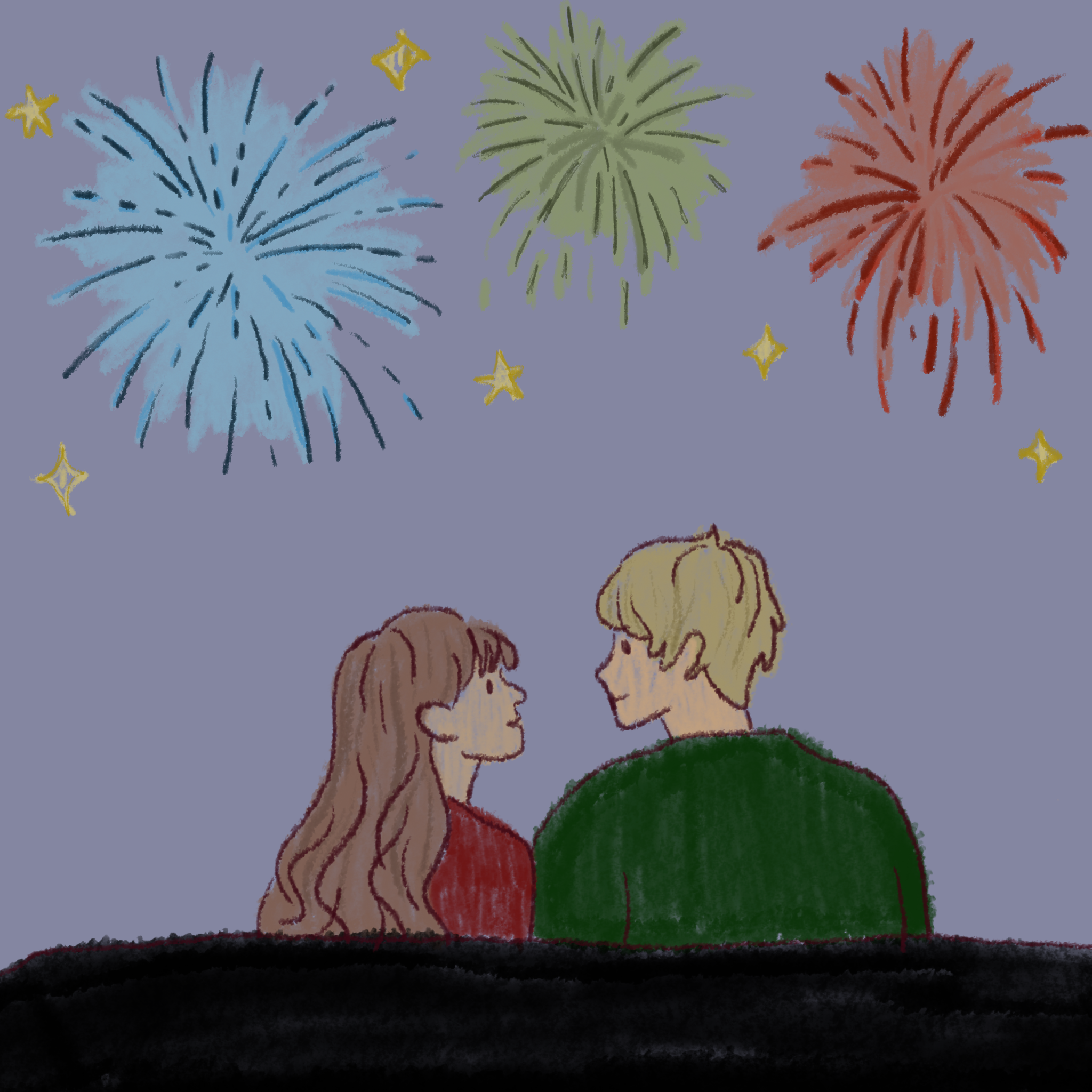 Then I blink and his hand is cupping my face and we’re kissing the way we only dared to that one night before, when the reality of us felt possible for the first time. I kiss him back, and not a single New Year’s Eve fireworks display could compare to the fireworks that are currently exploding in my brain, whistling and popping and filling my heart with warmth and light and color.