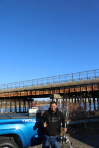 The next two hours made the first fish seem like beginner’s luck. After a while, I left the bridge and tried a few of Pete’s other spots: the bank behind the Target in North Haven, Q River Grill near Grand Avenue Bridge, and Criscuolo Park in Fair Haven. No dice. Still determined to find the fish, I headed to the last spot on my list: a bit of bank on the Mill River north of the old English Station coal plant.