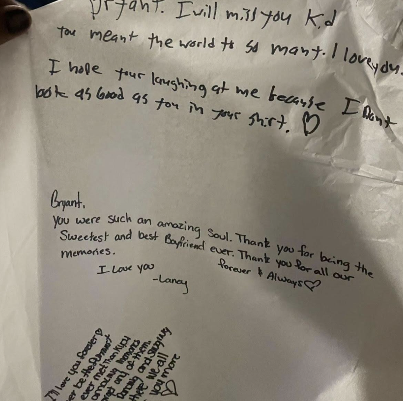 Parting notes for Bryant written on a lantern to be set off during his memorial July 30, 2023.