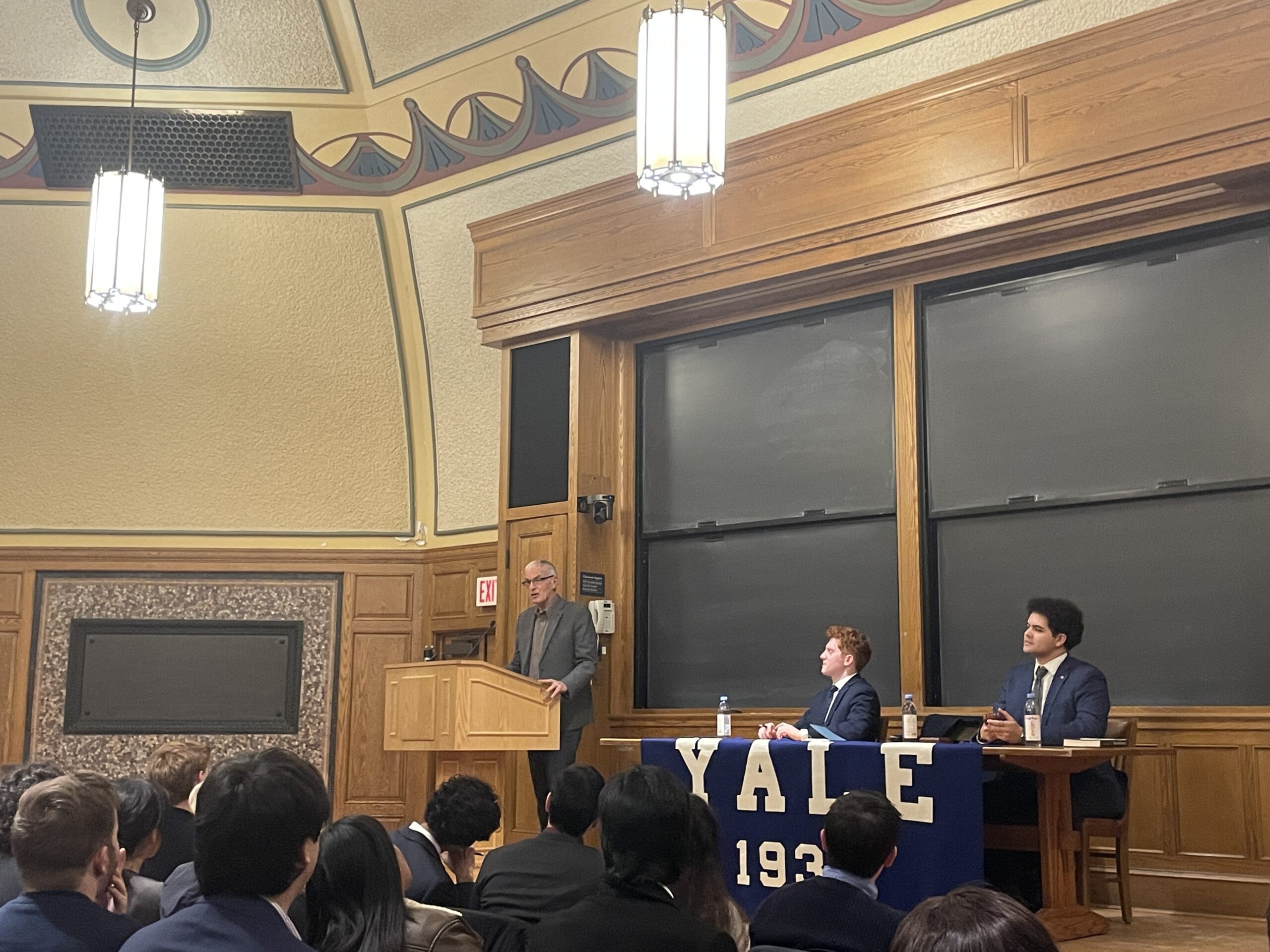 Political scientist and activist Norman Finkelstein spoke at the Yale Political Union on Tuesday on the resolution “the state of Israel is responsible for genocide.”