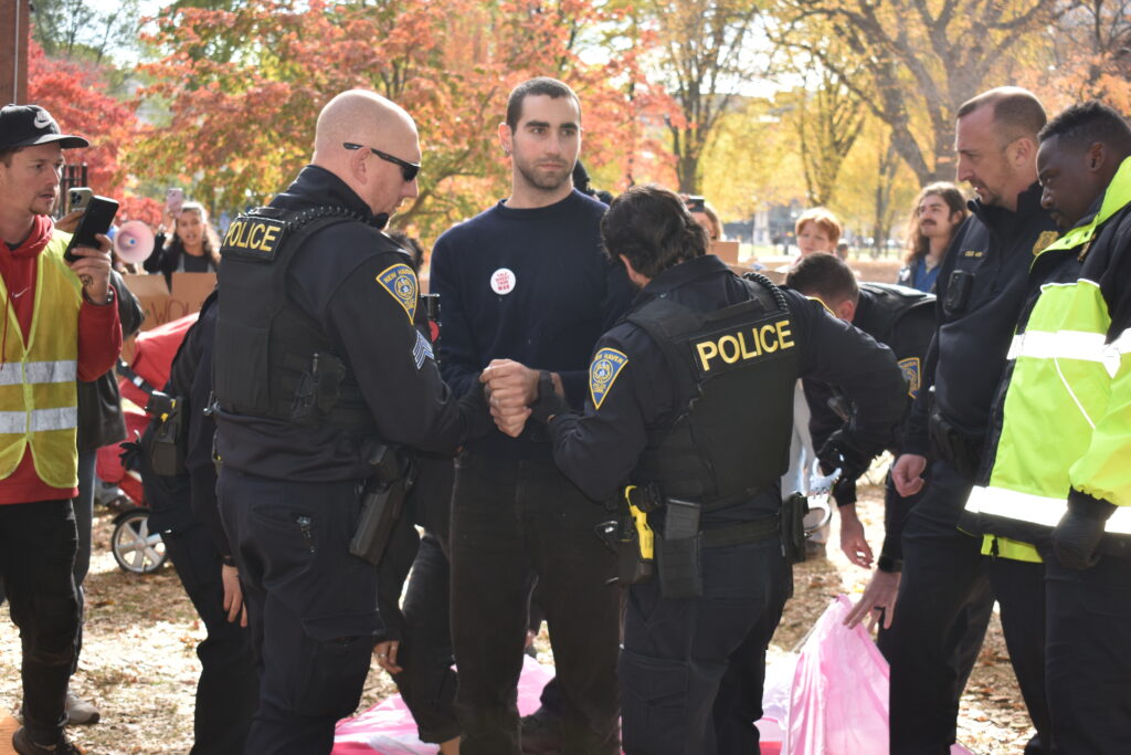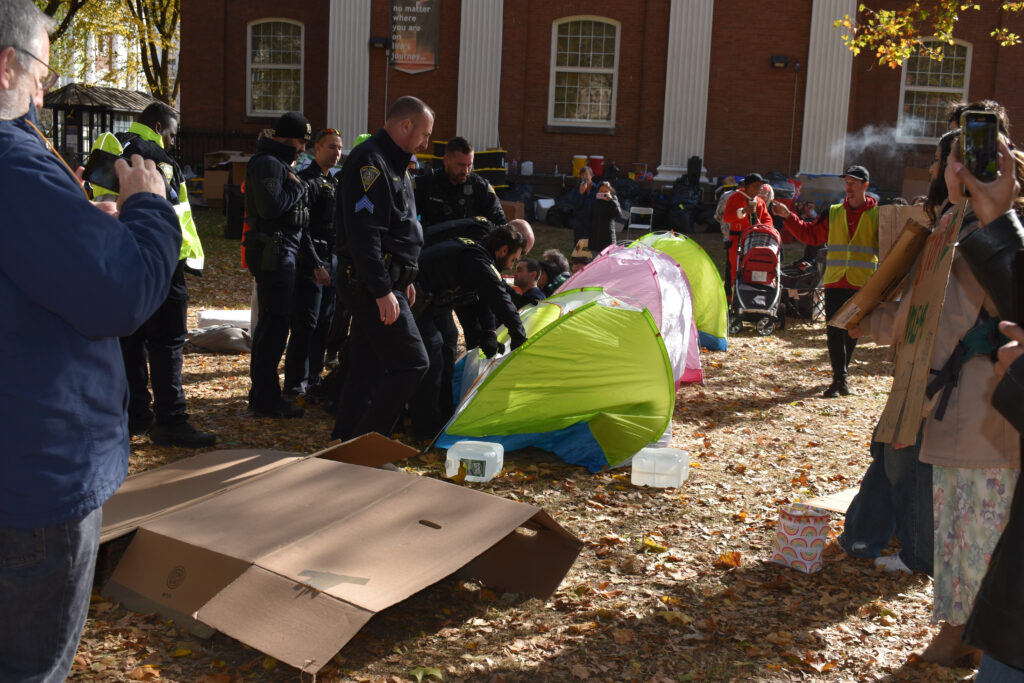 On Monday morning, participants once again brought out four tents in protest of continued disruption to their encampment by NHPD. Those occupying the tents told the News before arrests were made that they were prepared for the possibility of arrest.