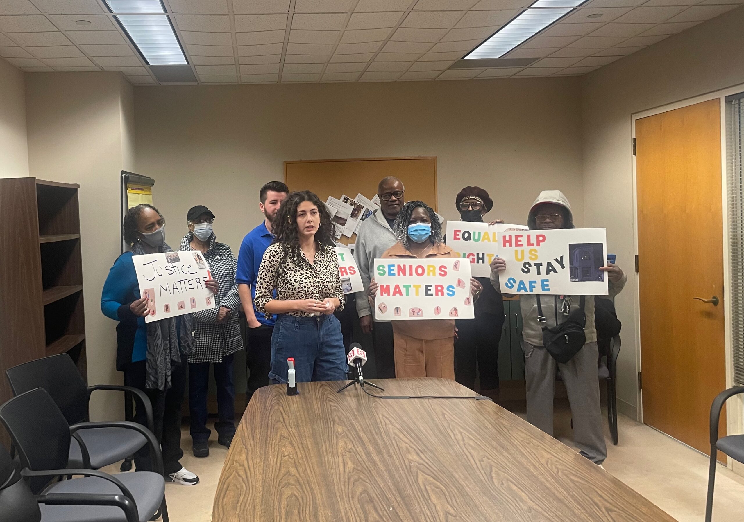 Her words were framed by the affirmative nods of fellow tenants and leadership holding signs that read “Respect Seniors” and “Help Us Stay Safe.” Others in the Senior Housing community echoed the requests for dignity especially as it pertained to elders.