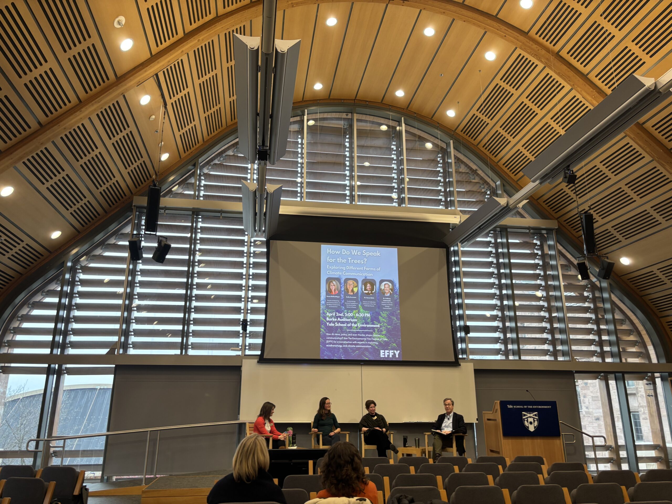 The panelists, from the Nature Conservancy, the School of Drama, the Peabody Museum and the School of the Environment, discussed how to make climate change a more relatable issue for various audiences, including the value in creating a narrative arc about climate change, remaining optimistic about the climate and encouraging substantive engagement with nature.