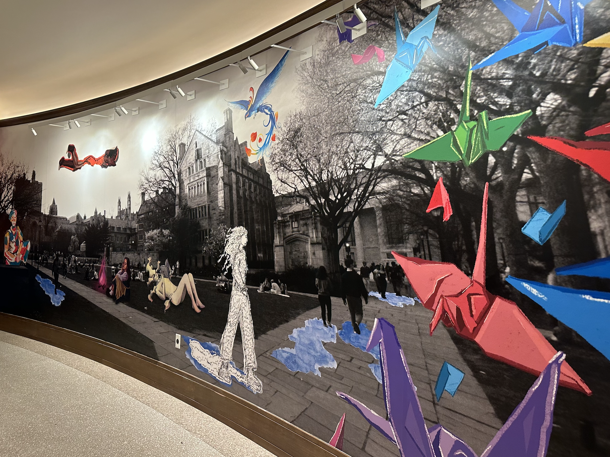 Through a collaborative mural on display at the Schwarzman Center, Yale Visual Artists offer participating artists and viewers a chance to re-imagine their first moments on campus.