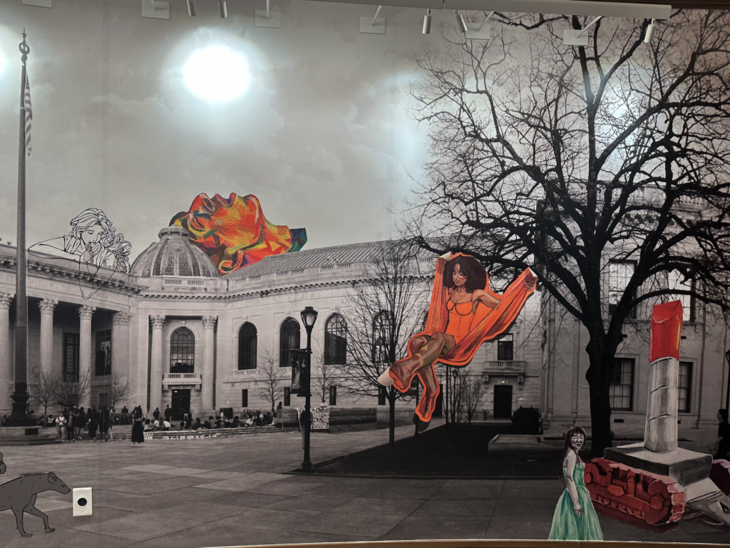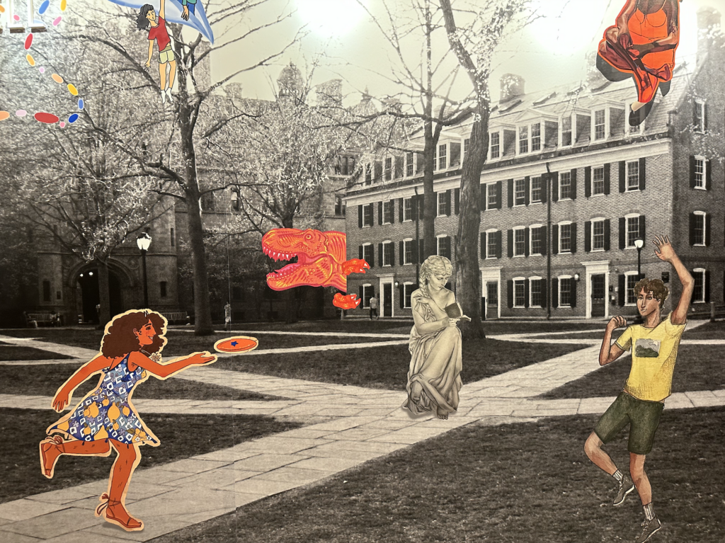 On Jan. 13, Yale Visual Artists installed the student exhibition “Re-Presenting Ourselves” at the Schwarzman Center Well Gallery. The mural displays 27 distinct pieces superimposed onto large black and white photographs of Old Campus, Beinecke Plaza and Cross Campus — communal spaces on campus.