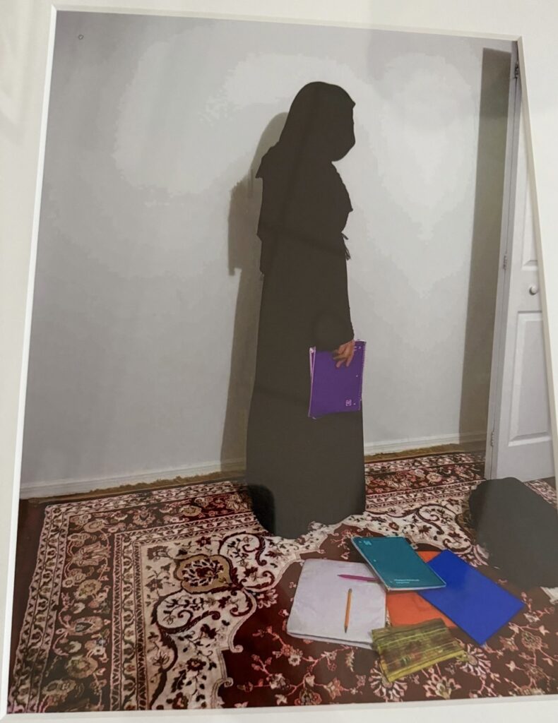 Faith is another central theme. One photograph captures a child reading the Quran. Beneath, the caption explains the artist’s joy in sharing religion with her children. “I was afraid that by coming to the U.S., our children would not learn about our religion, but they are learning, and that makes me feel happy and proud,” reads the caption.
